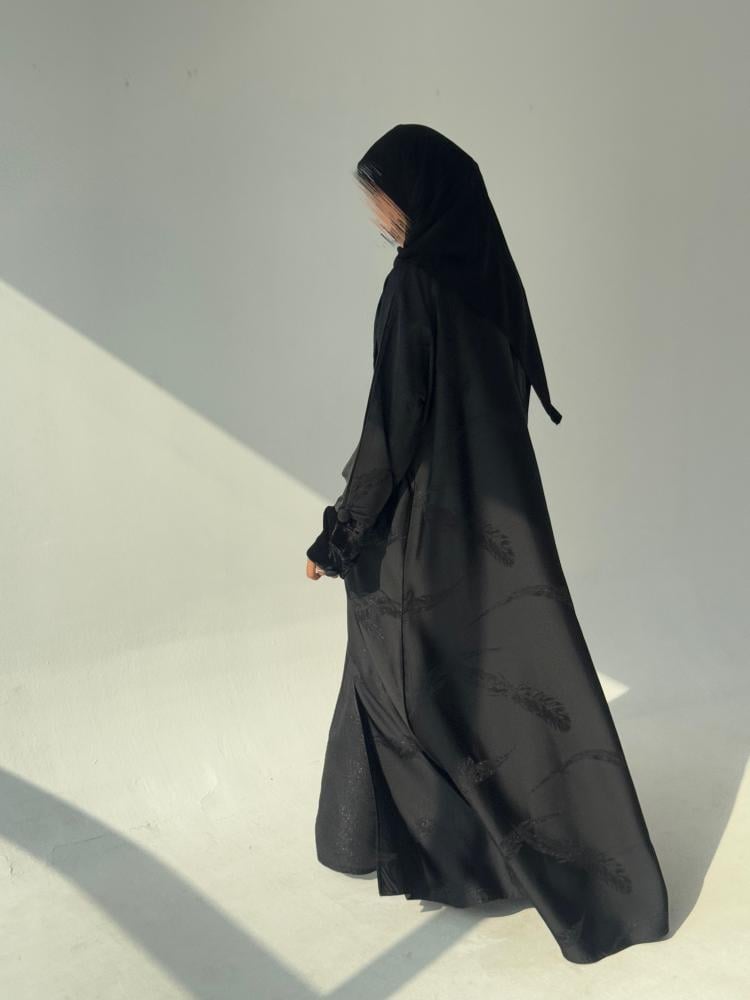 - تفاصيل الجاكار المشجر تمنح العباية مظهراً مميزًا وأنيقًا يناسب كافة المناسبات.